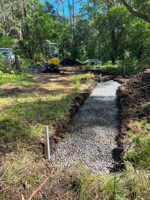 As groundwater accumulates in the surrounding soil, it effortlessly flows into the gravel trench, enters the perforated pipe, and is redirected away from problematic areas to a designated safe discharge point. This system functions adeptly below ground level and does not depend on visible grates or channels, which makes it particularly advantageous in clay-rich soils, commonly found in Wollongong and the wider Illawarra region.
